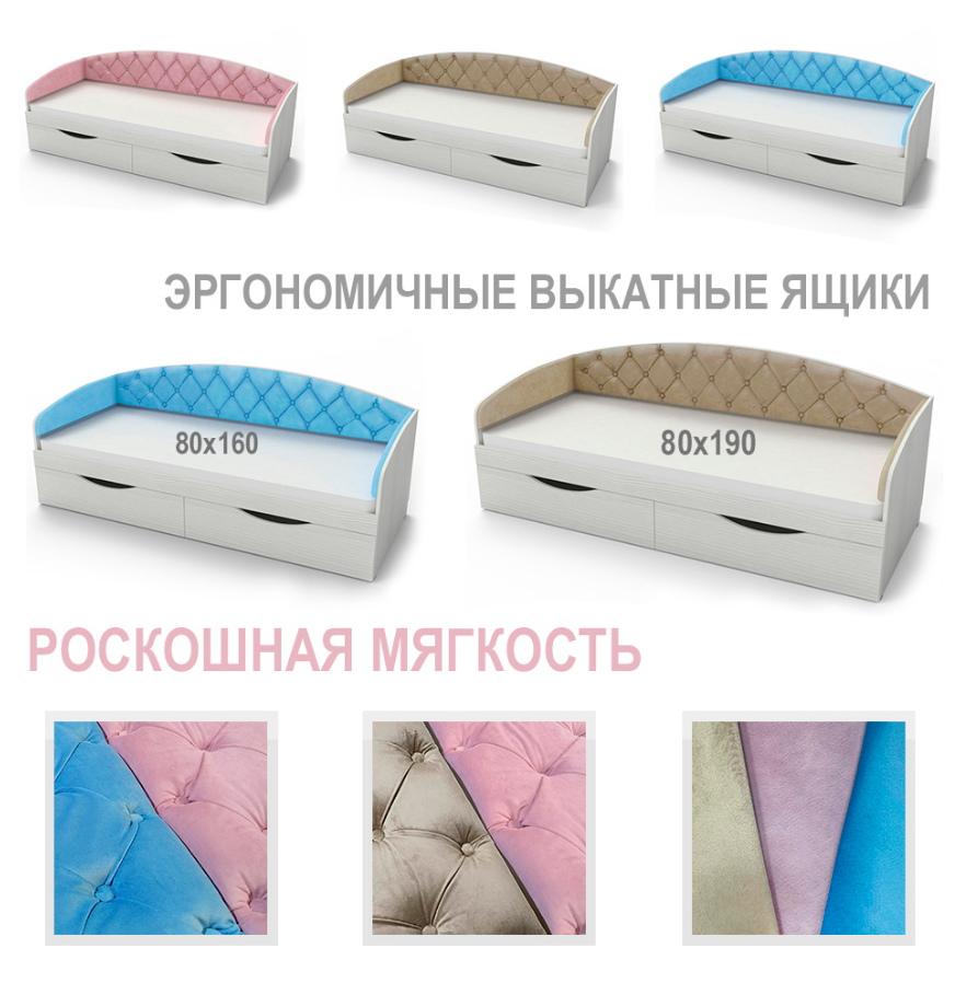 Кровать представлена в двух размерах спального места, чтобы дарить наилучшие сны как маленьким непоседам, так и энергичным подросткам.