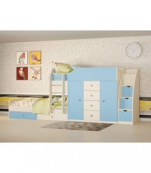 ОписаниеДвухъярусная кровать со шкафом Астра 6 с лестницей комодом отлично подойдет как для малышей, так и для подростков. Конструкция изделия позволяет освободить больше места в помещении для активных игр. Все края имеют безопасные скругления.