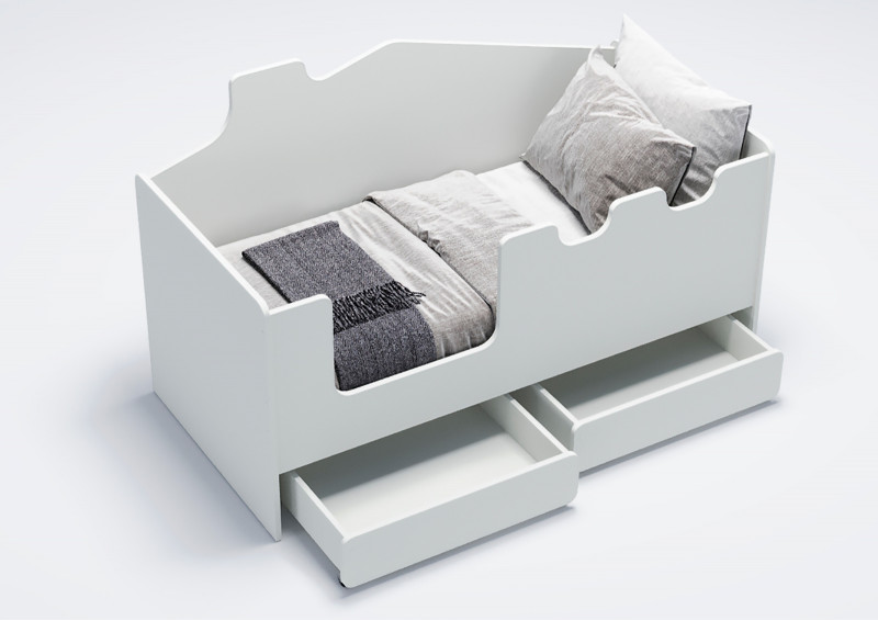 Безопасность ребенка во время сна и игр на кровати - это приоритет. Высокие безопасные борта высотой 521 мм обеспечивают надежную защиту от падений, а отсутствие острых углов и мягкий противоударный кант повышают безопасность использования. Стилизованный под домик задний борт создает атмосферу игры и фантазии, стимулируя развитие ребенка.