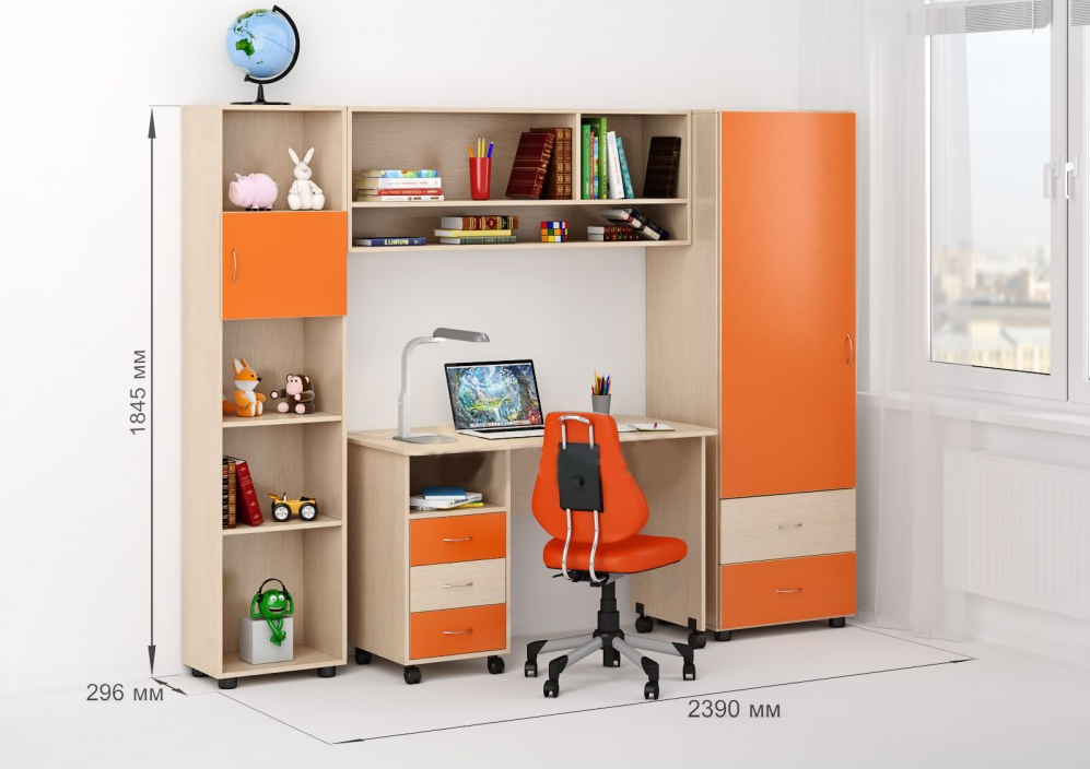 Уголок школьника Л-№7,в котором стол, стеллаж, пенал и антресоль настолько гармонируют друг с другом, что смотрятся единым целым.