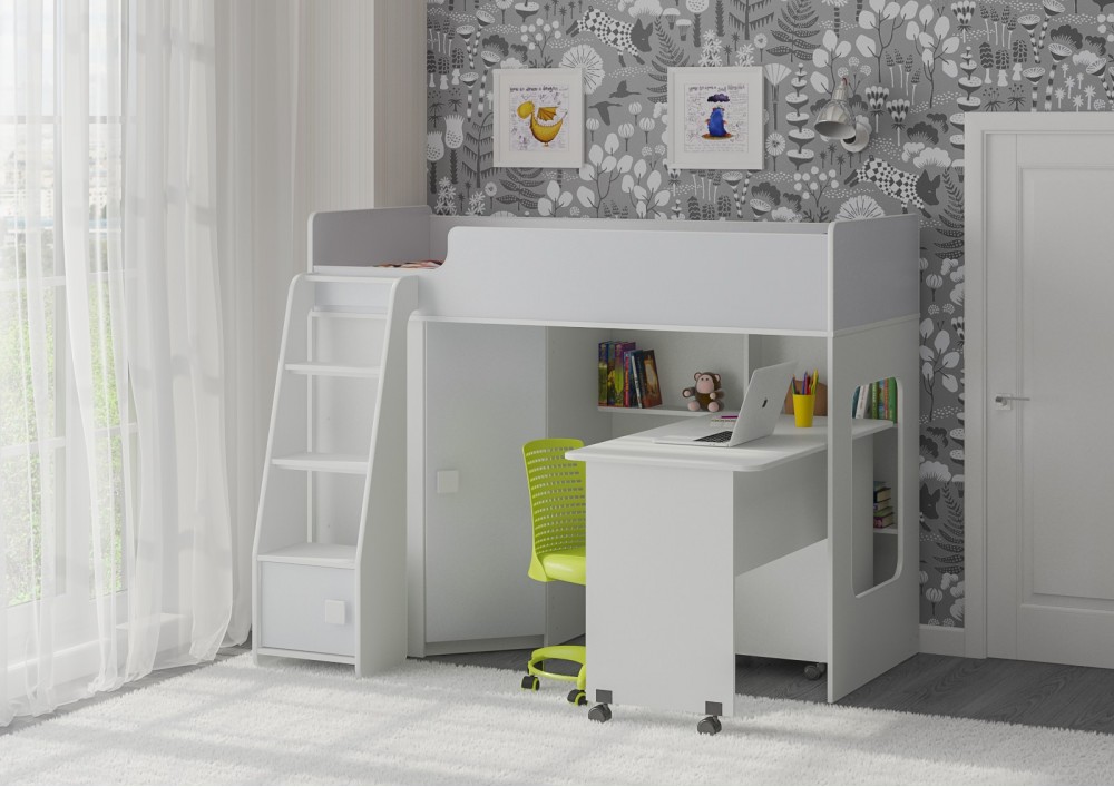 Кровать чердак Л-42.2.7 – великолепный комплект мебели с выдвижным столом.