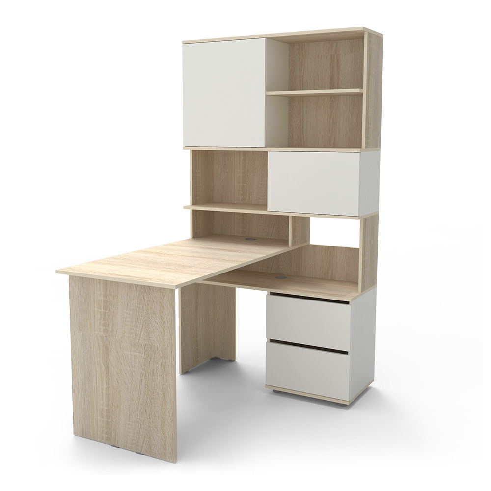 ОписаниеПисьменный стол со стеллажом для дома и офиса. Выдвижные ящики под столешницей на шариковых направляющих.