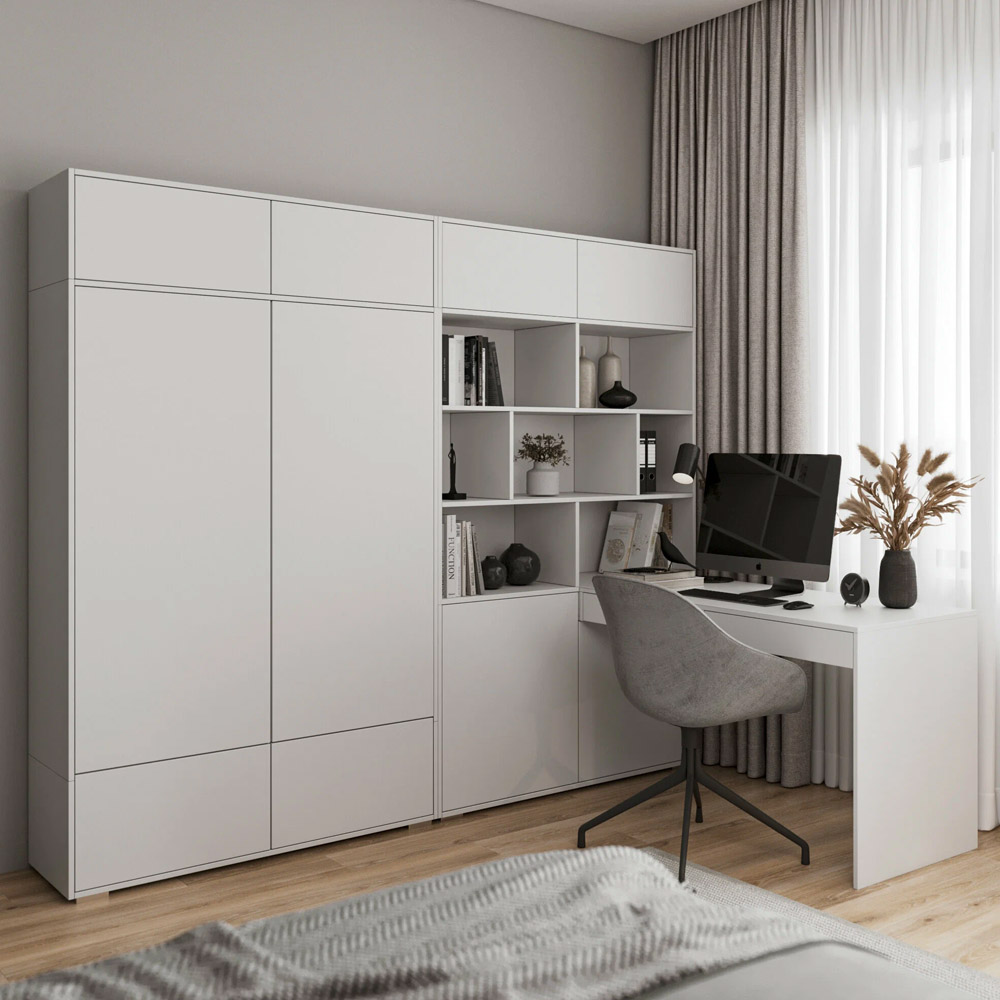 ОписаниеСборка шкафа на обе стороны. Качественные шариковые направляющие с мягким ходом, которые обеспечивают полное открытие. Дверцы шкафа с механизмом Push to Open.