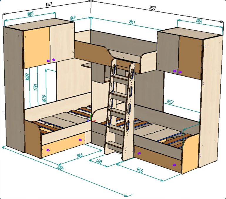 - спальное место: нижние 1900 х 800 мм, верхнее 1900 на 800 мм
